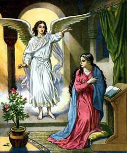 One day God sent the angel Gabriel to Nazareth to speak to Mary, for God had chosen this young woman to become the mother of the Savior who would soon be born into the world. Mary was surprised when she saw the angel, and she was more surprised when she heard his words. For he said, "You are highly favored and blessed among women, for the Lord is with you." Seeing that Mary did not understand his meaning, the angel told her that God was well pleased with her and he had chosen her to become the mother of Jesus, the Savior of men. He told her that Jesus, her son, would be a King, and that he would rule forever. Even yet the surprised young woman could not understand his words, so the angel told her that this wonderful child would be called the Son of God. While Mary listened the angel told her about the promised child of Zacharias and Elizabeth, the old people who lived in the hill-country of Judah. And he said, "Although they are old people, nothing is too hard for God to do." Then Mary knew that God could give her this wonderful child which the angel had promised, and she said, "Be it unto me according to thy word." So the angel left her and went back to heaven. Now, Mary knew Elizabeth, the old lady of whom the angel spoke; for Elizabeth was her cousin. And she knew how Elizabeth had longed to have a child for many years. She believed that her cousin must be very happy since God had promised to give her a child in her old age. Although the distance was great, she wished to see Elizabeth. So she decided to make her a visit. As soon as Mary entered the home of her cousin and spoke words of greeting, God caused Elizabeth to know the secret which the angel had told this young woman in her own home. And Elizabeth rejoiced that Mary had come to visit her. She knew that Mary would some day be the mother of Jesus, the Savior of men. The two women spent many happy days together, then Mary hurried back to her own home in Nazareth. There God's angel spoke to Joseph, the carpenter, in a dream, and told him about the wonderful secret of Jesus' birth. And Joseph was glad, for he had been longing for the time to come when the promised Savior should be born. He took Mary into his home and they waited for the angel's promise to come true. Tomorrow: Zacharias and Elizabeth Name Their Child |